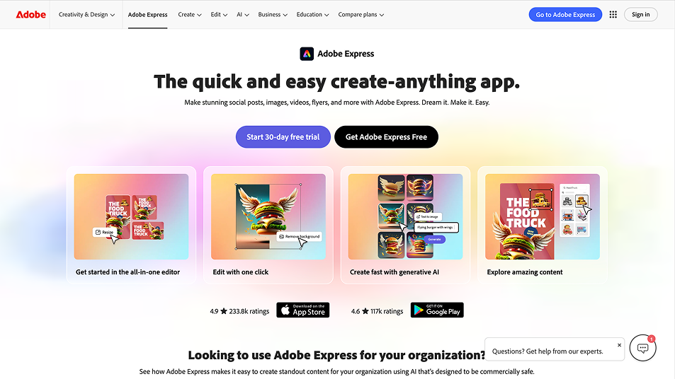 Adobe Express (formerly Adobe Spark) delivers Adobe-grade polish in an easy-to-use platform for non-designers. It’s a great alternative for users who want better branding and more professional templates than Fotor can offer.